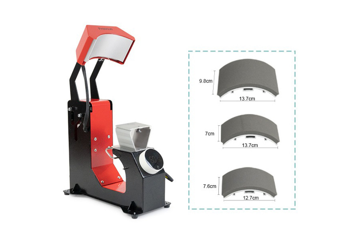 Кепочный (бейсболочный) термопресс с электронным приводом, таймером открывания и температуры. В комплекте 3 насадки.